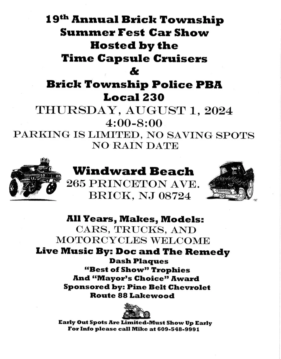 Join Brick PBA Local 230 at the 19th Annual Brick Township Summer Fest Car Show.